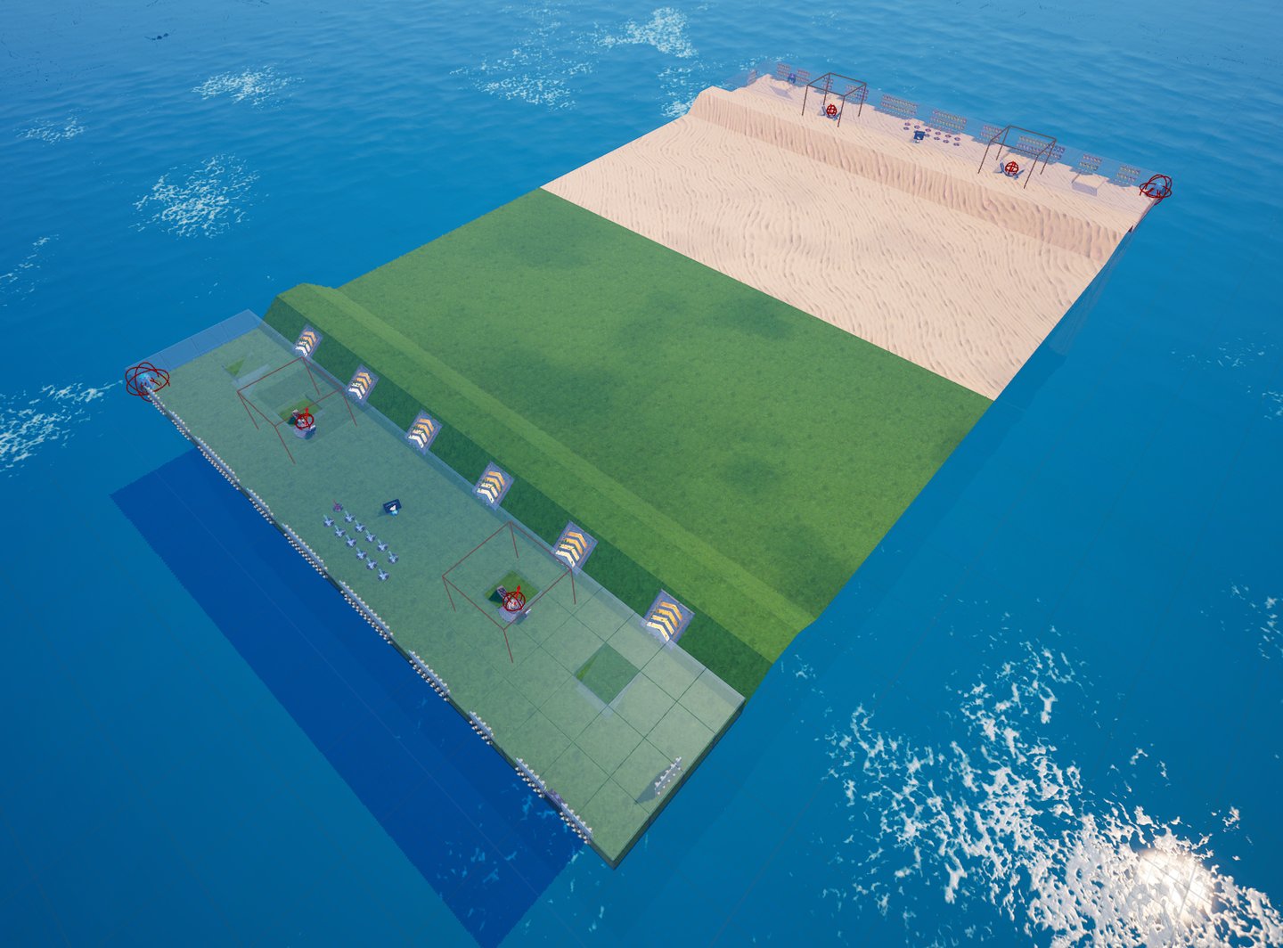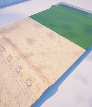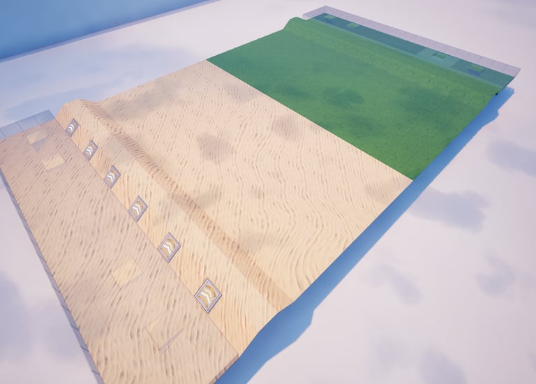 PvP map inspired by the popular Red vs Blue format, featuring a Desert vs Grass theme and a unique twist, a elevated combat space.