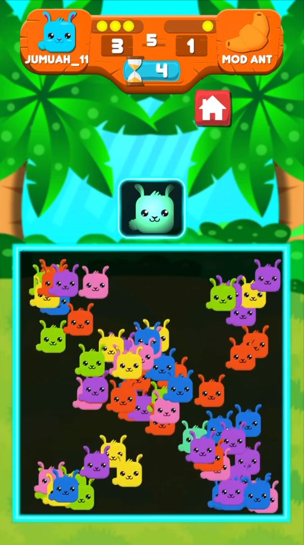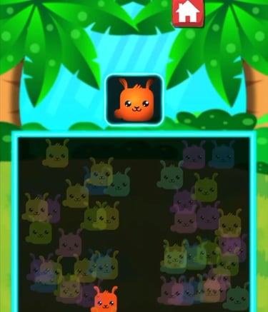 A character-search puzzle game where players must quickly find the correct character among many similar icons..