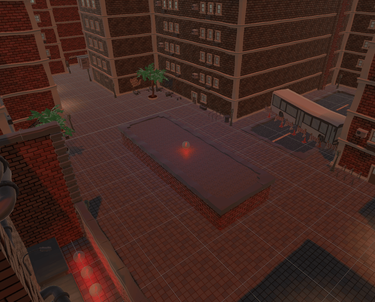 Once the gameplay structure of the level was working, the final stage was set dressing and polish. The goal during this phase was to improve visual readability and navigation. Environmental details and landmarks were added to help players orient themselves within the level and to reinforce the atmosphere of the environment while maintaining gameplay clarity.